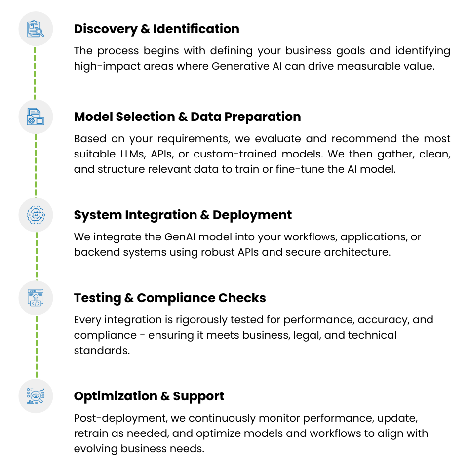 Our team brings specialized knowledge in cutting-edge generative AI technology. Our expertise allows us to offer full-cycle GenAI development services tailored to your business context and industry.
