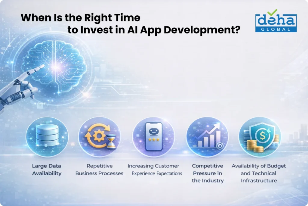 Many companies want to adopt artificial intelligence but are unsure when the investment will deliver the highest value. Identifying the right timing for AI app development helps businesses maximize return on investment while minimizing unnecessary development costs.