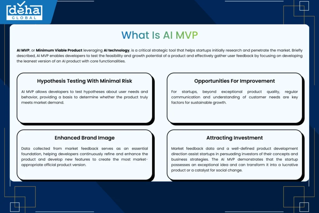 For CEOs, CTOs, and other business leaders aiming to integrate AI solutions seamlessly, DEHA Global’s AI MVP Development services present an invaluable opportunity. An AI MVP, or Minimum Viable Product leveraging AI technology, serves as a strategic tool to test market feasibility with minimal risk by focusing on core functionalities.