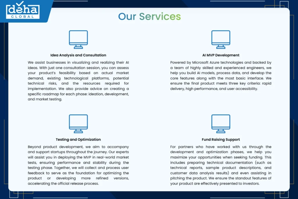 By partnering with DEHA Global, business leaders can effectively navigate the complexities of AI integration, ensuring that their AI MVPs are developed efficiently, meet market needs, and position their companies for future growth and innovation.
