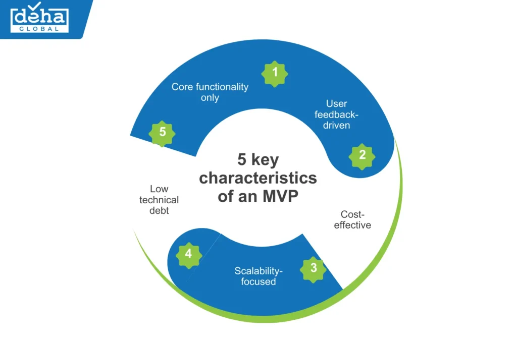 An MVP follows a structured approach that helps businesses validate ideas with minimal risk and cost. It focuses on efficiency, rapid testing, and user-driven improvements. These key characteristics define a successful MVP: