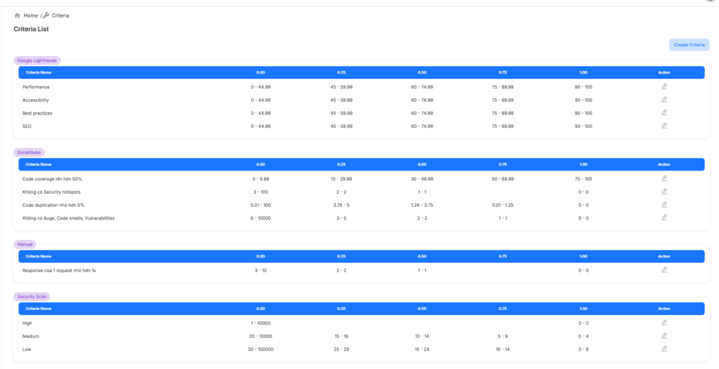 Projects are quantitatively evaluated against defined internal thresholds. If standards are not met, corrective action plans are mandatory.