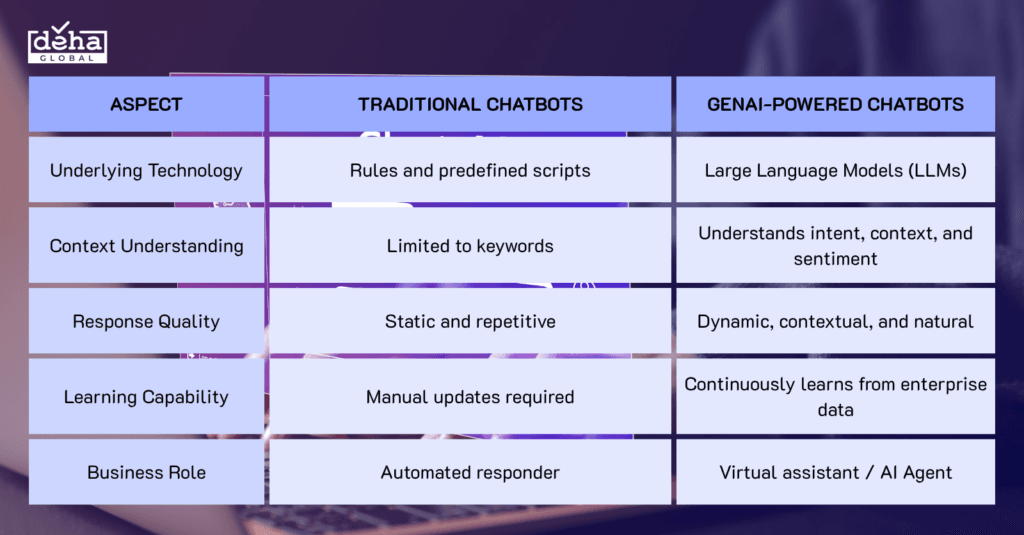 So, what truly differentiates traditional chatbots from the new generation of GenAI-powered chatbots