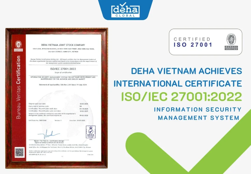 DEHA Vietnam Has Achieved International Certification SO/IEC 27001:2022/Latest Version
